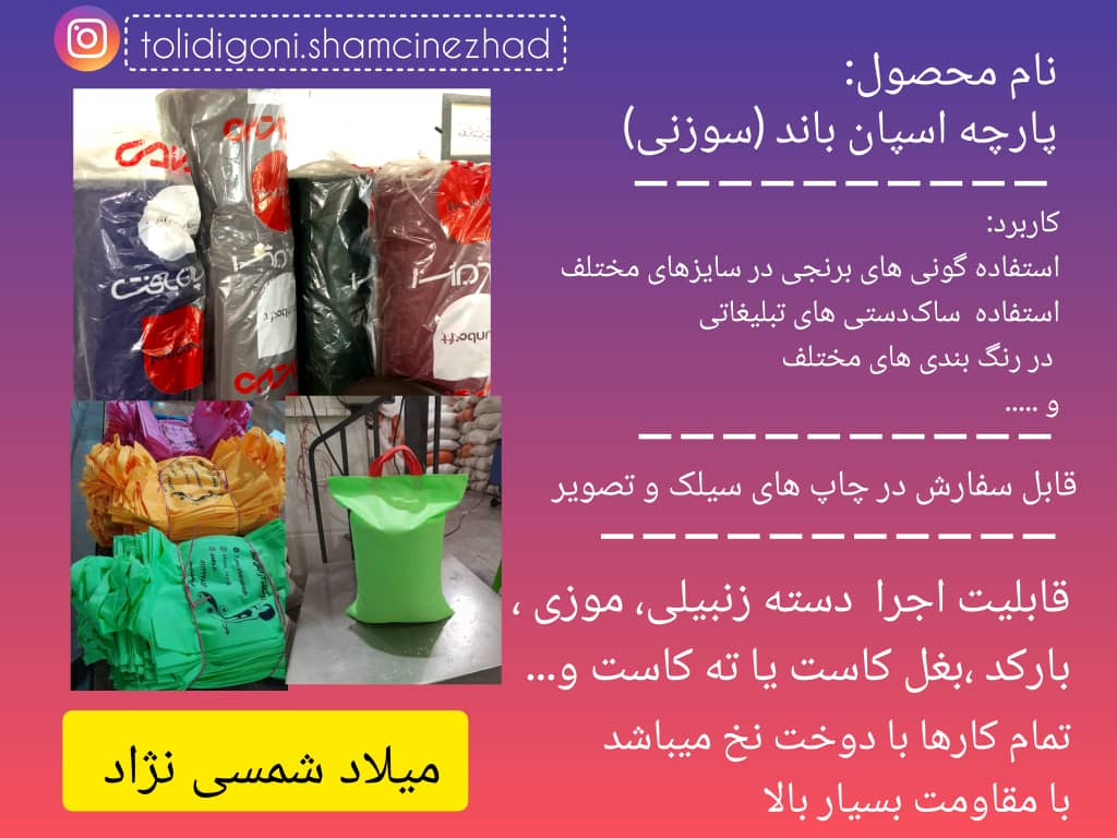 شما عزیزان کارخانه دار و مغازه دار و کسب کار های آنلاین میتوانید برنج خود را در بسته بندی کیسه های اسپان باند که پارچه های رنگی هستند در سایز ۱کیلویی تا ۱۰ کیلویی